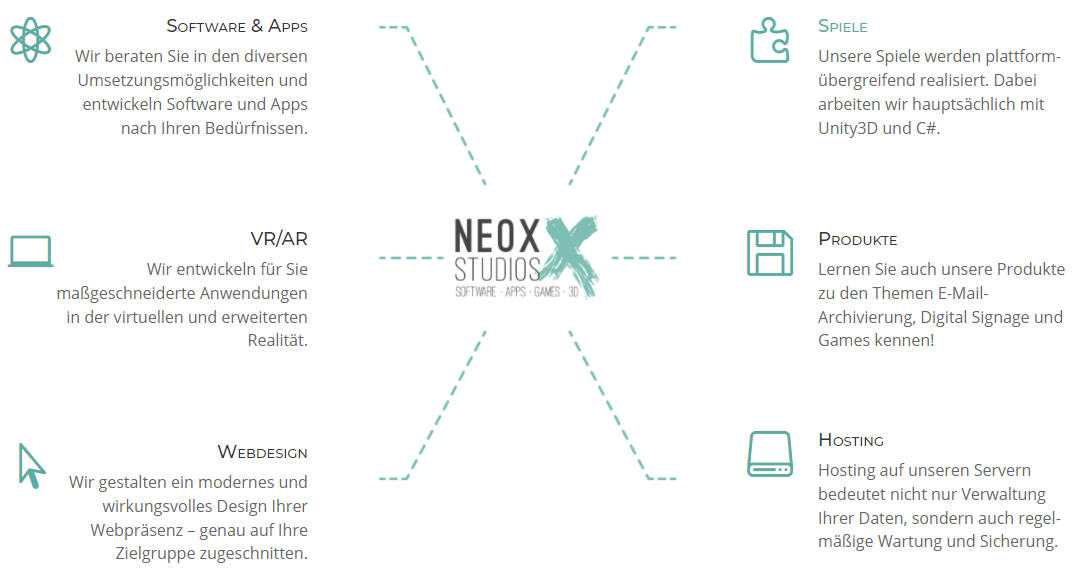 “Lange waren wir auf der Suche nach einen IT-Dienstleister, der uns kompetent, unproblematisch und in allen Bereichen unserer IT unterstützt. Wir sind mit den NEOX Studios endlich fündig geworden. Das Team von NEOX unterstützt uns bei Bereitstellung und Fragen des Mailings, Hostings, der Programmierung von Sonderlösungen oder bei alle anderen technischen Fragestellungen von Routerkonfiguration bis Hardwareanschaffung. Gerade die persönliche Betreuung und keine Dienstleistung von der Stange machen immer wieder Spaß.”